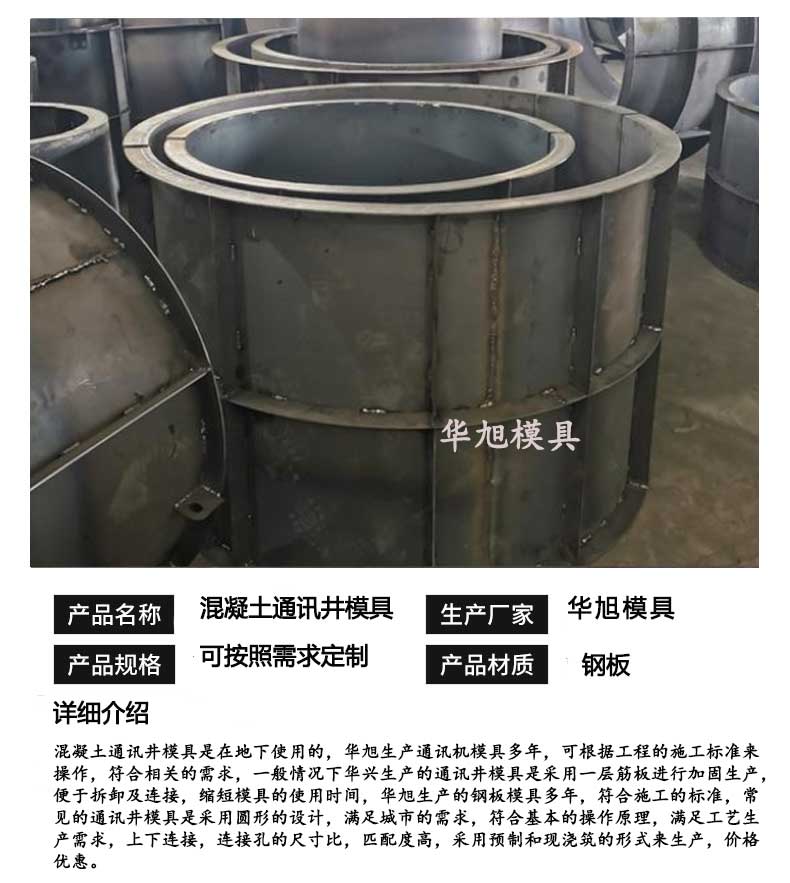 客戶反饋:經過多家挑選后來選擇了華旭的混泥土通訊井模具,可重復使用效率高,給我們的施工帶來便利,拼接簡單,堅固耐用,而且華旭生產的通訊井模具筋板密度大,接口處平滑,滿足工程需求,價格也不貴,整體來說使用了這么久還是不錯的。