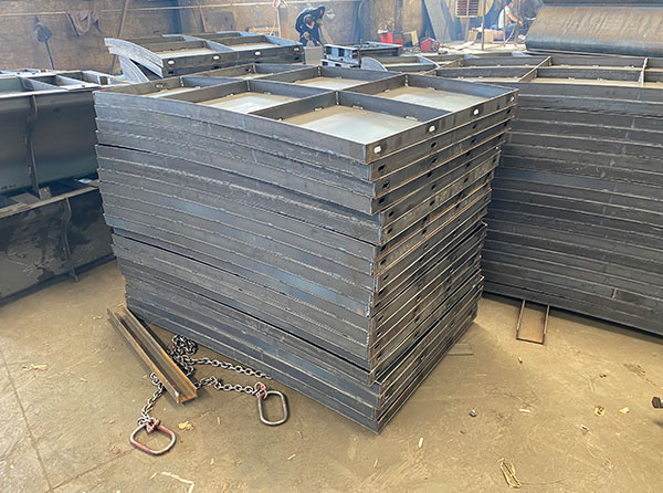 由鋼模板制成,其厚度加厚,面板大于5mm,筋板大于6*8。這樣體積大,可以承受的能力也強。構造采用拼接式,可以加快脫模速度。