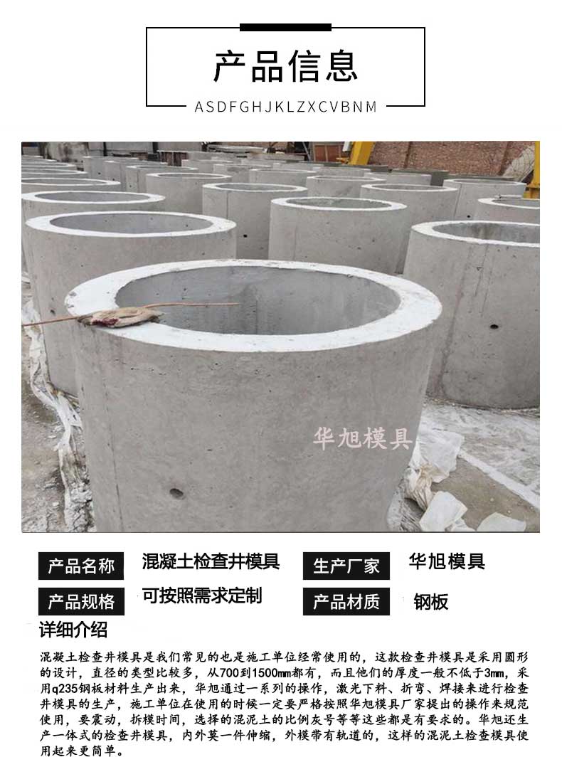 華旭常見的是采用內外模為5mm的鋼板生產出來,固定而成的。