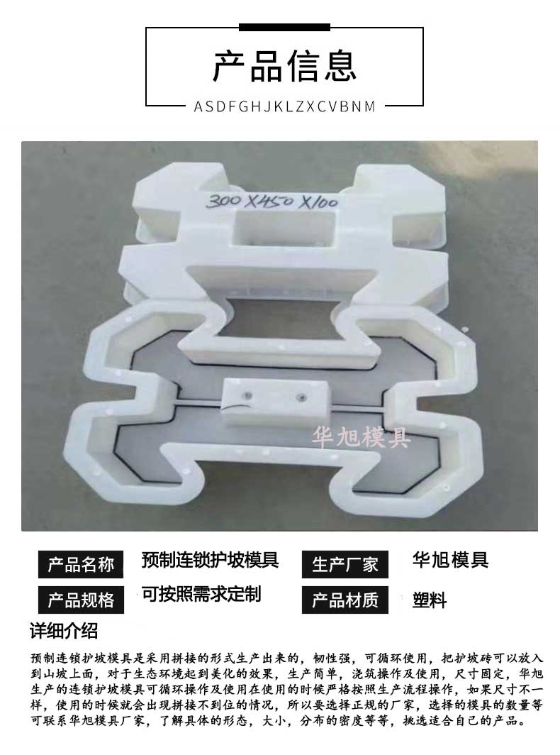華旭可根據(jù)需要不斷的進(jìn)行改進(jìn),尺寸標(biāo)準(zhǔn),護(hù)坡模具使用平穩(wěn),公路兩側(cè)邊緣路基的加固和防護(hù)。