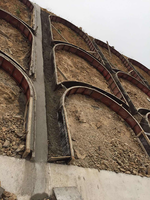 生產(chǎn)施工中的拱形骨架護坡圖片