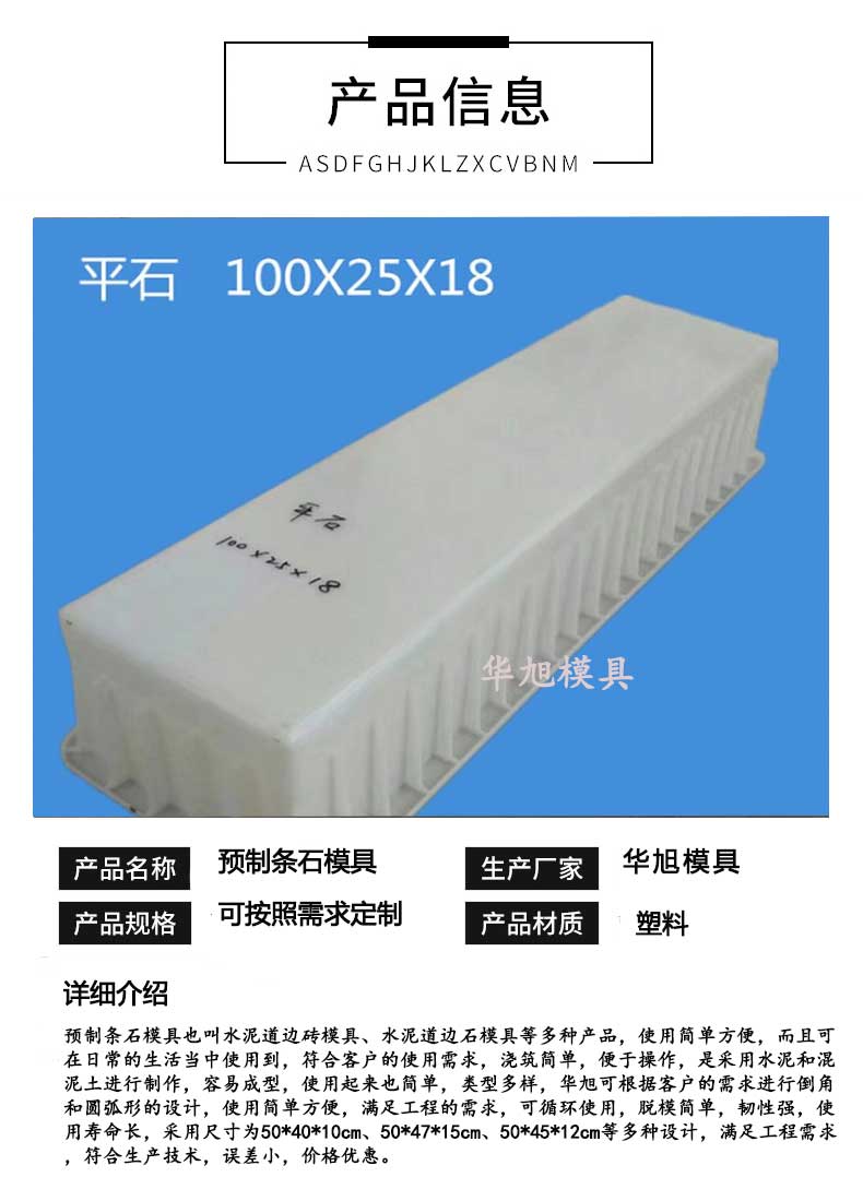 預制條石模具尺寸多樣,符合地區的使用標準,寬帶等都可定制。