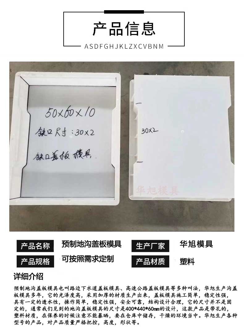 路邊下水道蓋板模具采用塑料材質生產,底部是弧形的設計,種類和型號齊全。
