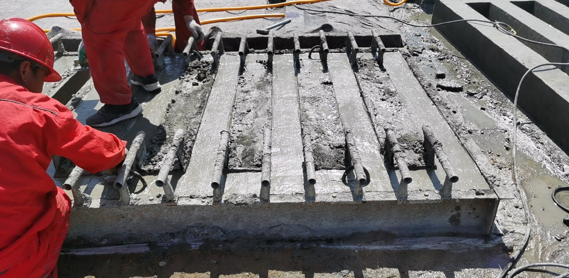 柵欄板通常都為水泥與混凝土混合澆筑成型的,整個水泥件整體的長度在四米的長度,表面有著吊裝環,方便成型后進行沿海施工。組裝模具每個部位緊緊咬合在一起,拼接牢固,容易脫模使用順暢。預制柵欄板模具使用現場圖片