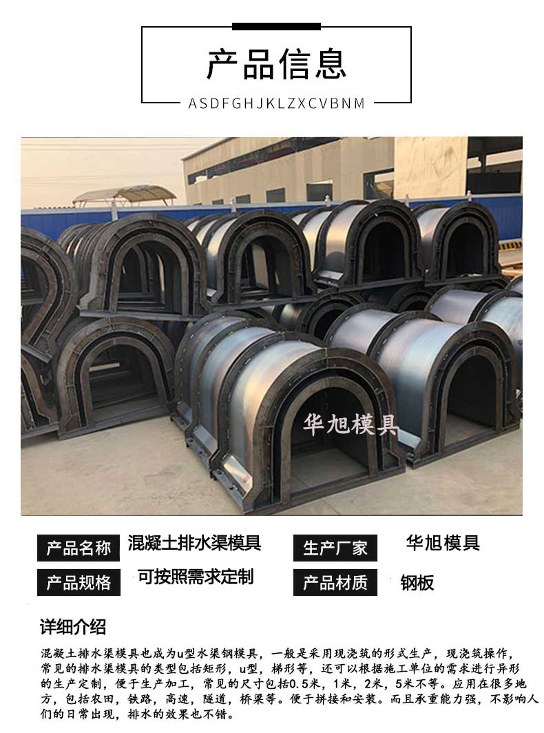 華旭可根據客戶的需要生產各種規格型號的混泥土排水渠模具,u型水渠鋼模具,焊接簡單,耗損低,客戶的口碑不錯,值得信賴。